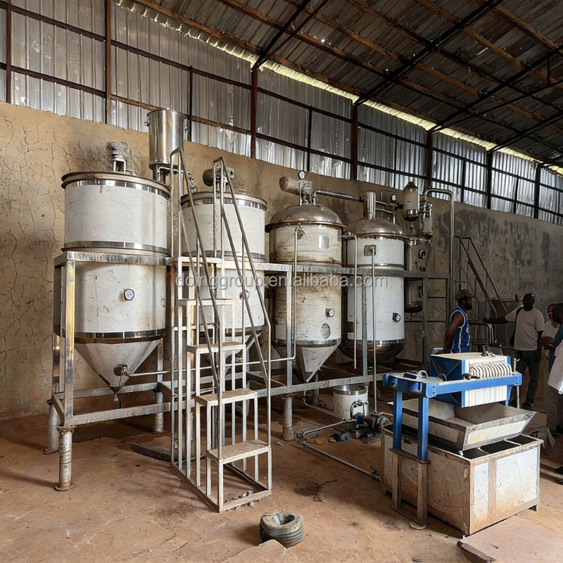 Machine de raffinage d'huile de coco de type batch pour les Philippines, équipement de raffinerie d'huile de coco comestible à petite échelle pour usine d'huile