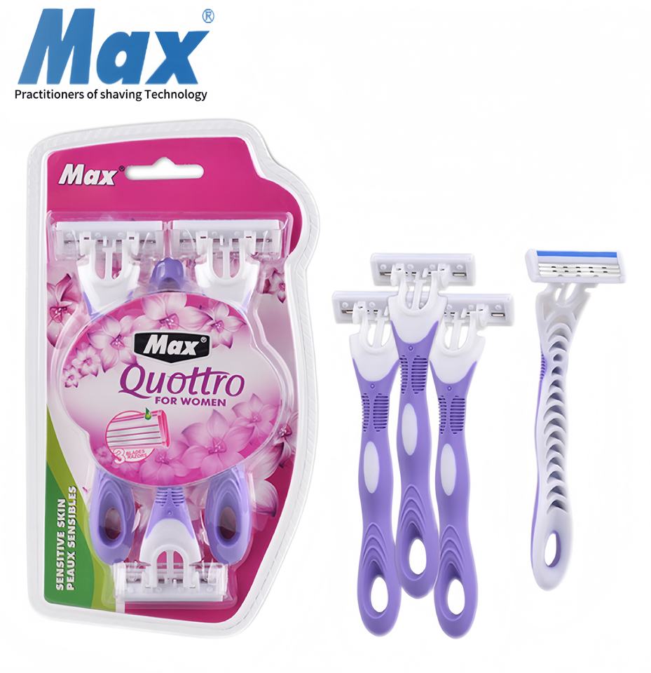Rasoirs pour femmes Hot Max Philippines, rasoir jetable à trois lames avec bande lubrifiante, manche en plastique violet, rasoir à raser