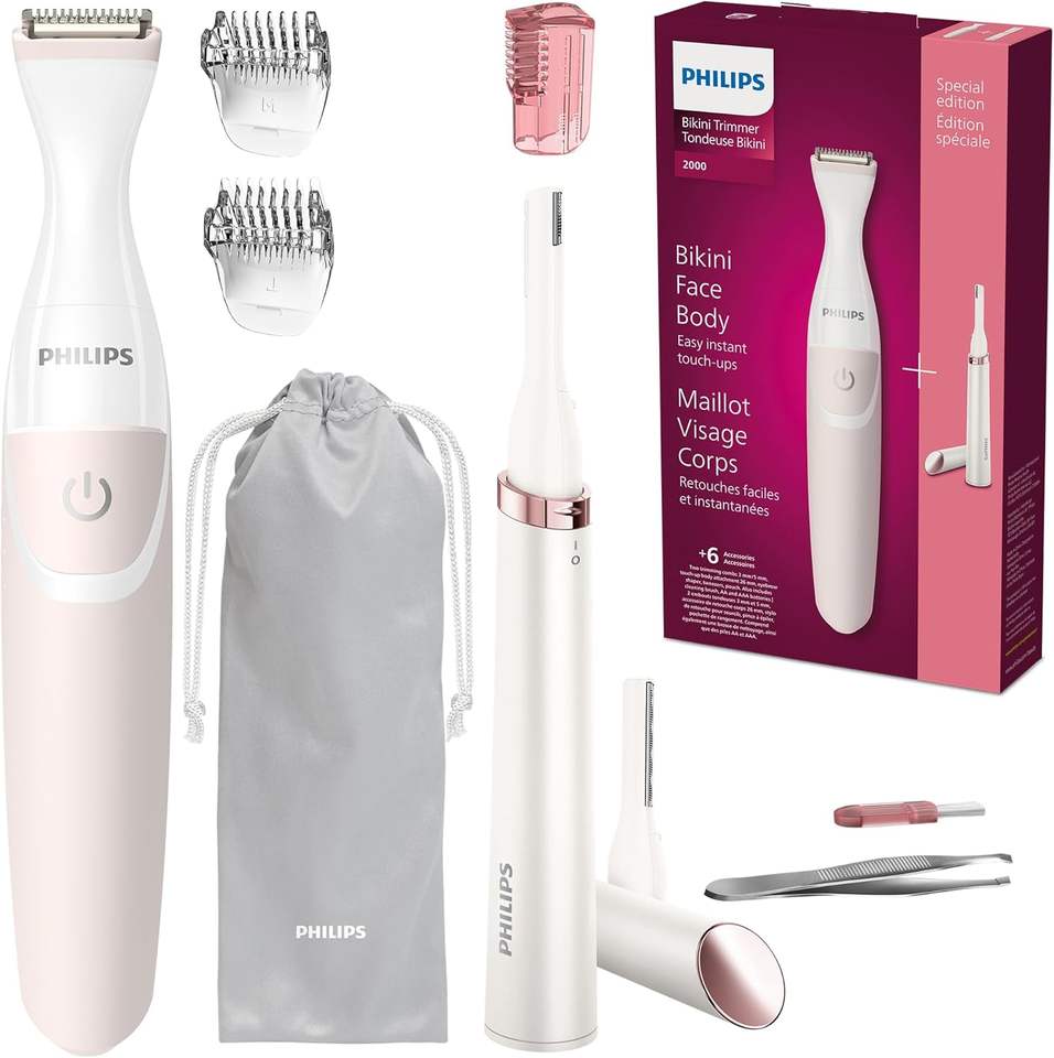Philips Beauty Women's Bikini Trimmer and Precision Trimmer Special Edition Bundle, BRT38790,Pink and White