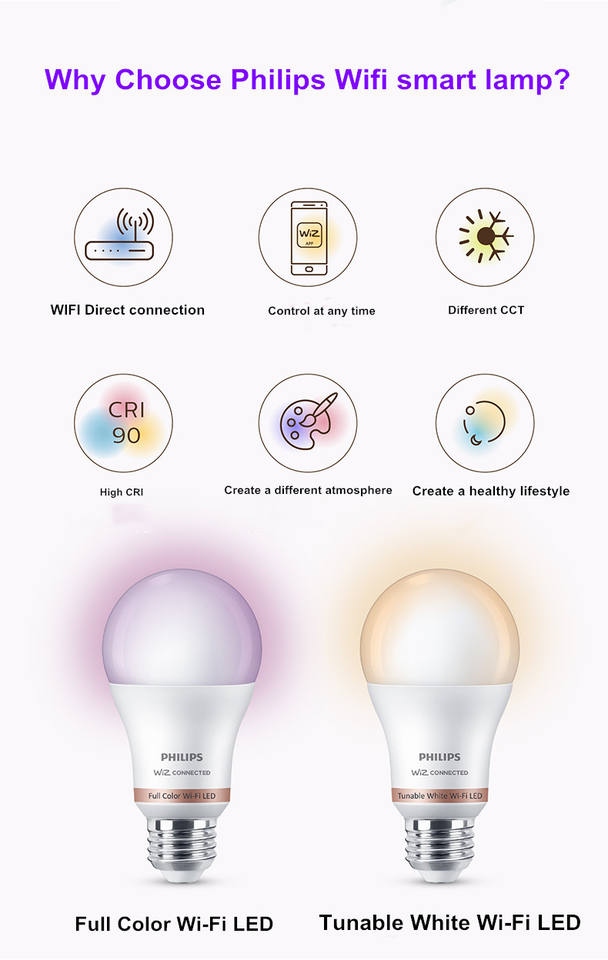 Philips E27 9W nouveau type sans fil Wifi Smart wifi ampoule colorée dimmable