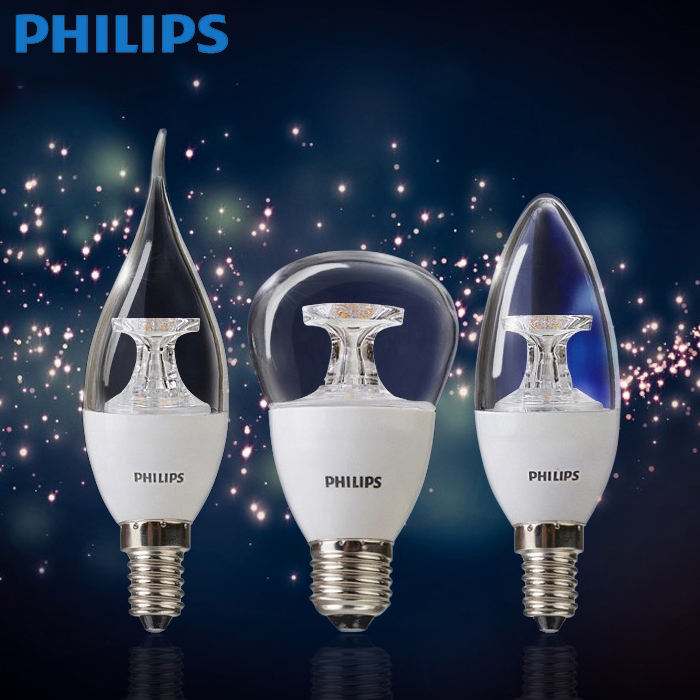 Ampoule LED Philips E14, ampoule à bougie, pointe à bulles, ampoule à économie d'énergie, lampe en cristal, source de lumière, vis 3,5w5W