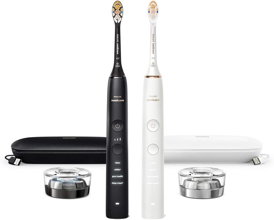 Brosse à dents électrique connectée Philips Sonicare DiamondClean, lot de 2, x2 brosses à dents soniques, x2 étuis de voyage de recharge