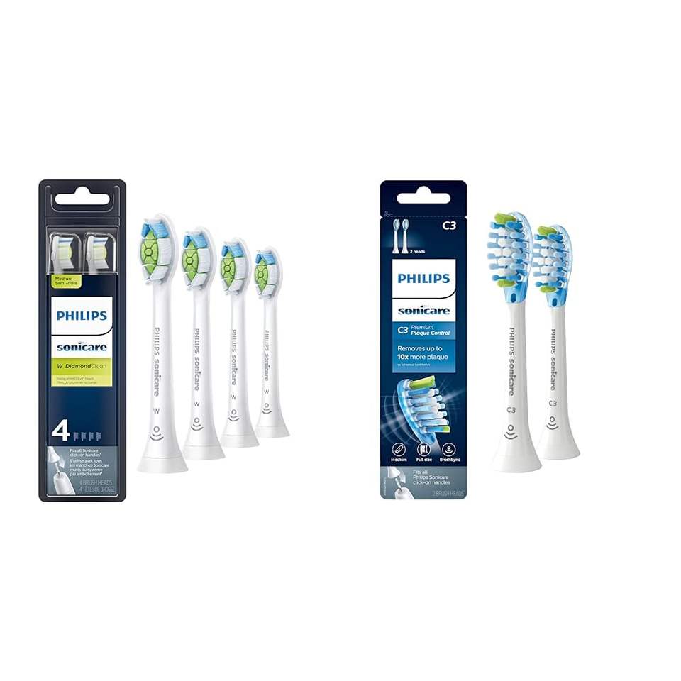 Philips Sonicare Genuine W DiamondClean Replacement Toothbrush Heads, 4 Brush Heads, White, HX6064/65 & Genuine C3