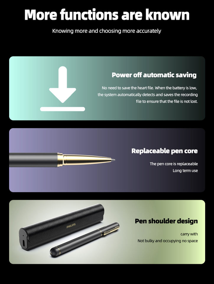 Stylo enregistreur vocal Philips VTR5980 AI 32 Go en métal, format audio MP3, PCM sans perte, application mobile, télécommande avec boîte cadeau