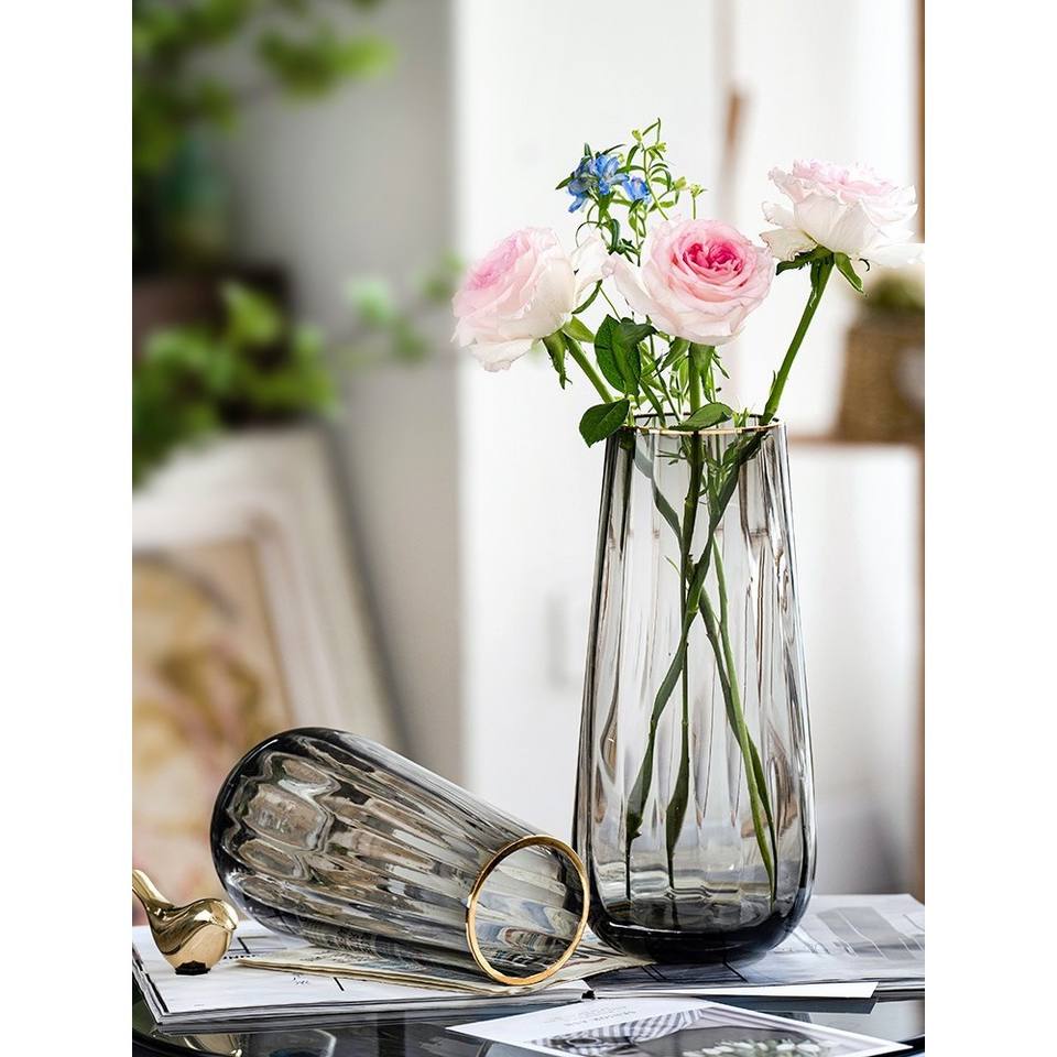 Phnom Penh Rayé Gris Vase En Verre Transparent pour Plantes Hydroponiques Arrangements De Fleurs Salon Chambre Décoration De Bureau