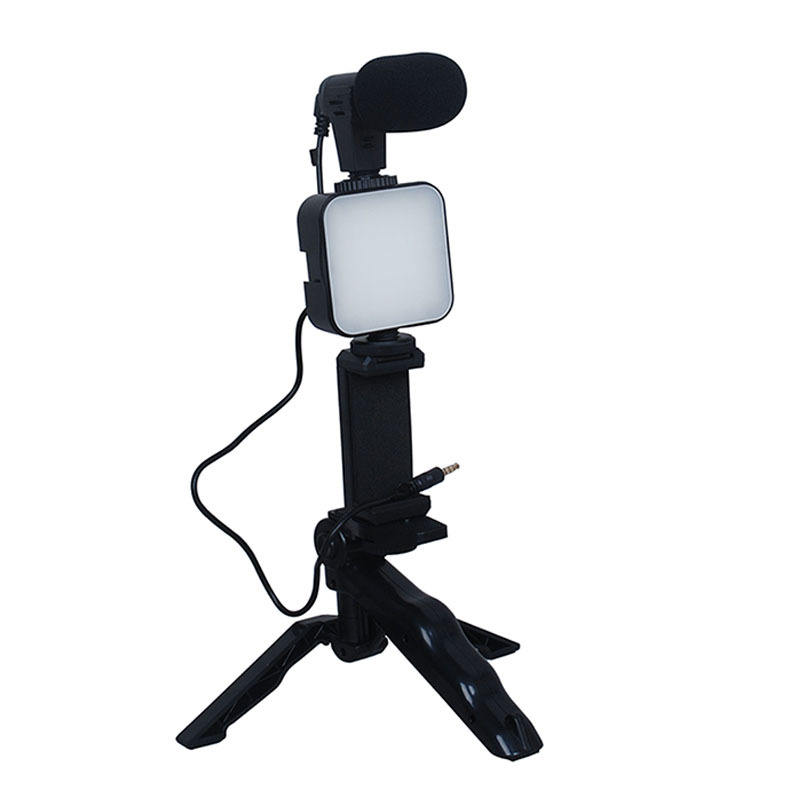 Support de téléphone portable pour photographie, éclairage vidéo, kit microphone LED, trépied selfie, poignée d'enregistrement, stabilisateur portable