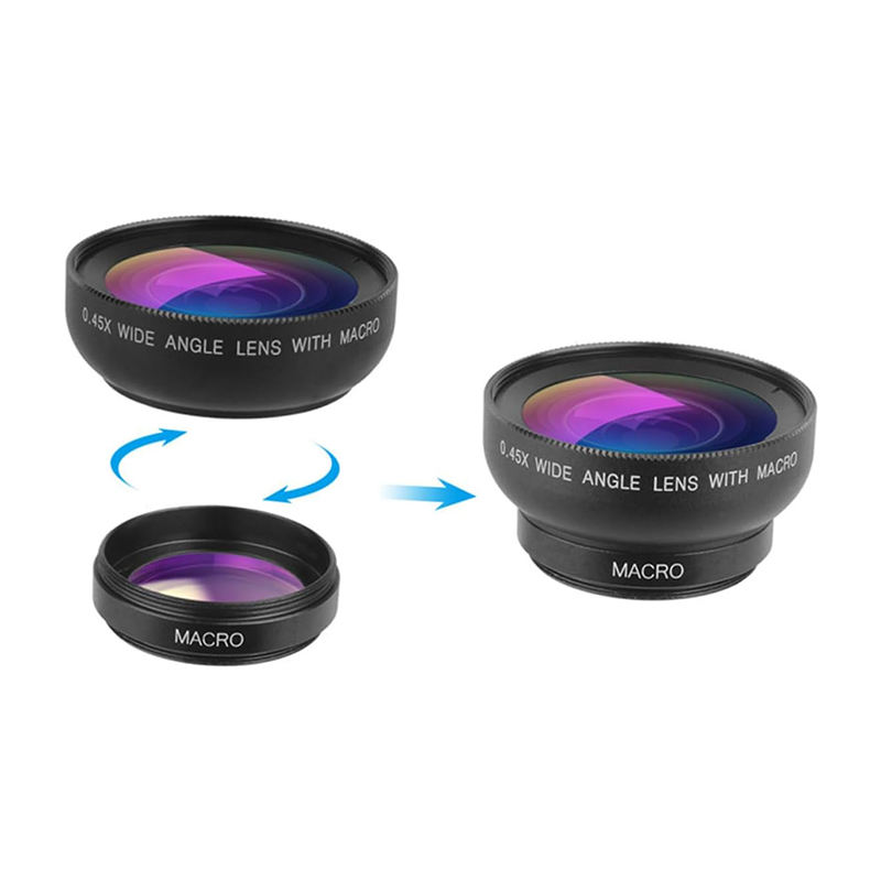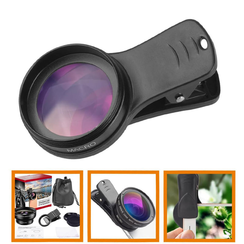 Loupe de téléphone 3 en 1 Objectif universel Fish Eye + Objectif grand angle + Kit d'objectif de caméra à pince macro pour Smartphone