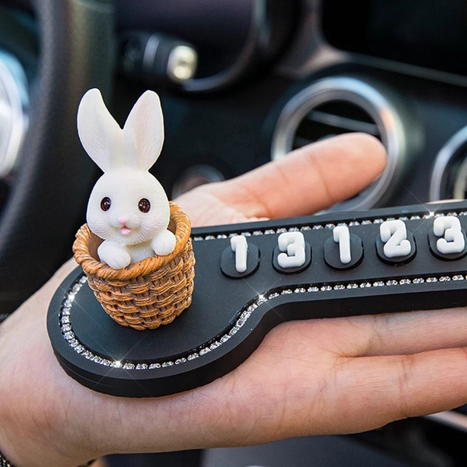 Numéro de téléphone dans la voiture Panneau d'arrêt temporaire Multifonctionnel Cartoon Bunny Carte de stationnement temporaire Décoration de plaque d'immatriculation rapide