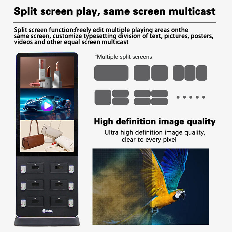 Chargeur de fil de téléphone Kiosque publicitaire lcd Station de charge de fil de téléphone intelligent 55 pouces chargement de téléphone signalisation numérique avec serrure