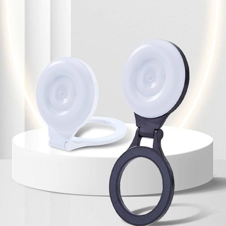 Téléphone avec anneau magnétique, éclairage LED pliable rechargeable pour téléphone, anneau lumineux pour maquillage, webcam, ordinateur portable, photo, maquillage (blanc noir)