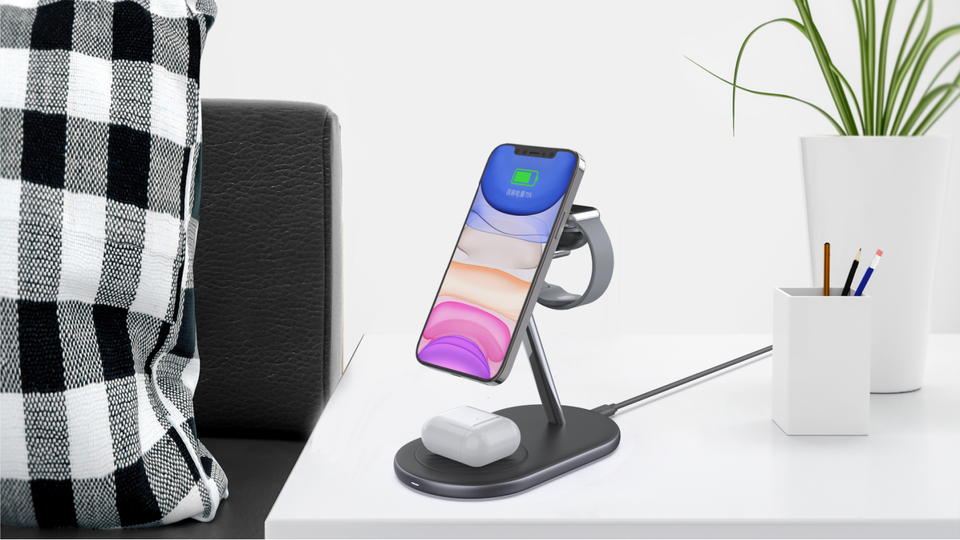 Électrique, Chargeur sans fil, Station de recharge sans fil 3 en 1, Magnétique, Chargeur de bureau, Fast charger