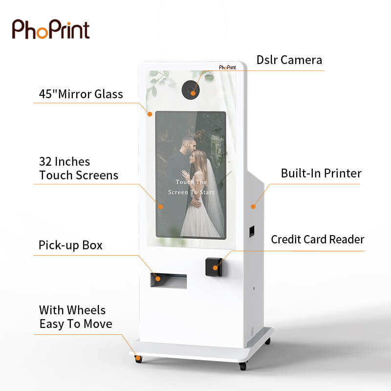 Phoprint Photo Booth Écran tactile Paiement par carte de crédit Self Service Miroir Photo Booth à louer