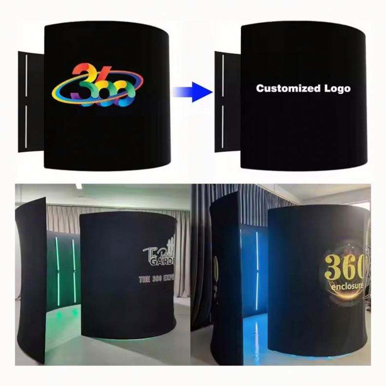Cabine photo semi-circulaire avec éclairage RGB pour salons professionnels, cabine ronde 360° pour événements