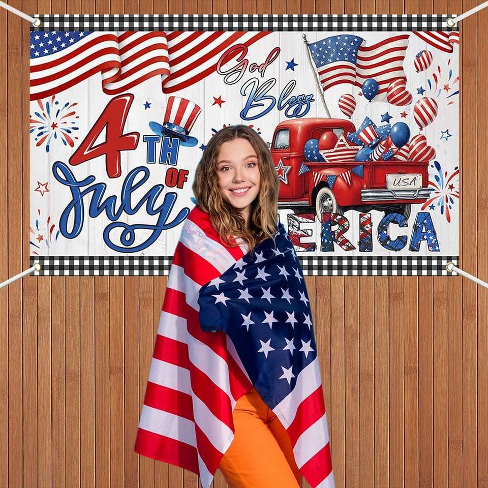 Photomaton Happy 4th july Outdoor Independence Day Party Bannières 70.8X43.3 Inch Fourth july USA Decor Signs Photo Booth Props pour