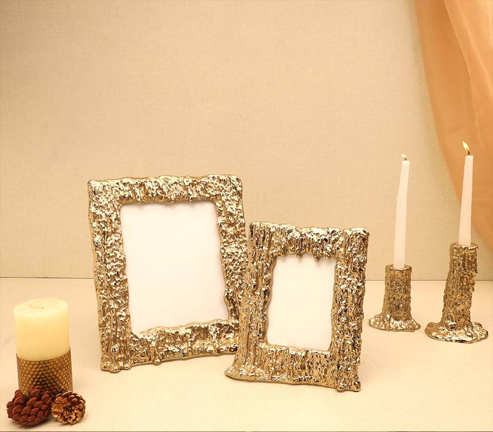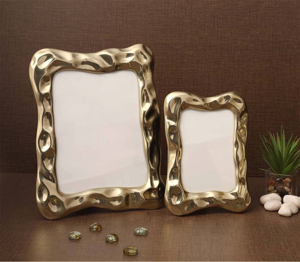 Ensemble de 2 cadres support table hôtel salon cadre Photo mur métal et verre pour décoration murale métal couleur or