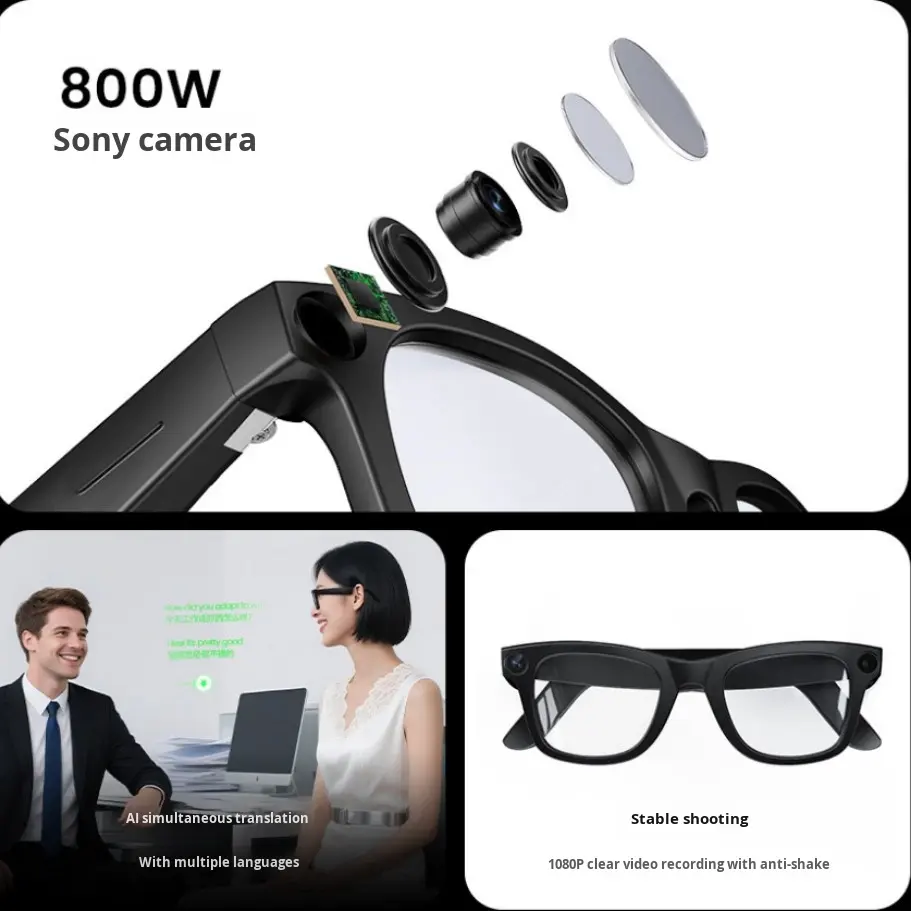 Lunettes intelligentes photochromiques IA avec caméra 8MP, enregistrement vidéo et audio HD 1080P, lunettes connectées avec double micro, lunettes VR intelligentes