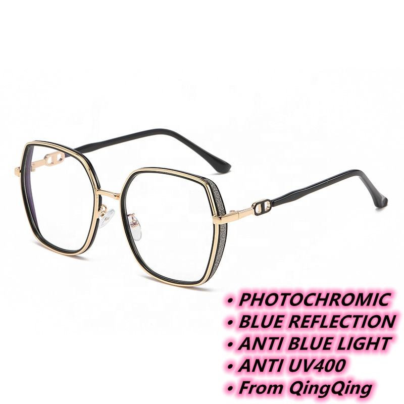 Lentille photochromique photogray lunette anti-reflet hexagone 2024 oversize bling bling diamant crème lunettes bloquant la lumière bleue