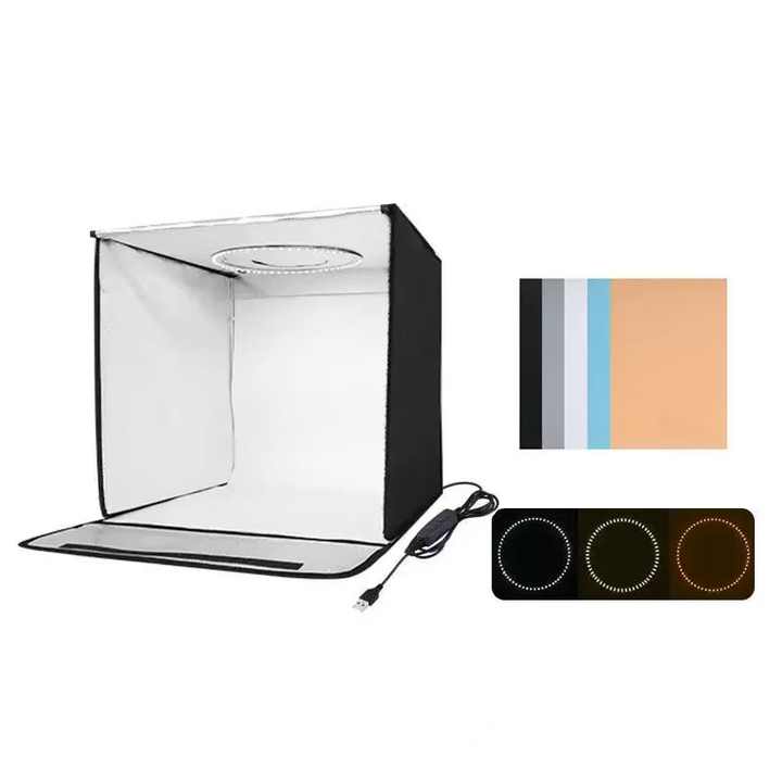 Tente de tir photographique Boîte à photos Boîtes à lumière LED Studio Soft Box Softbox avec arrière-plans en PVC