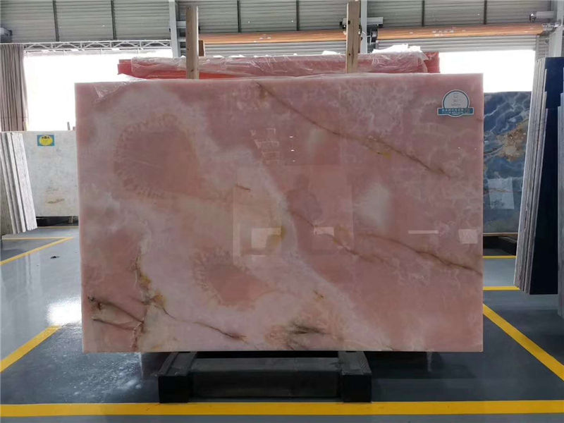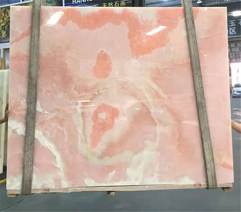 Dalles de marbre en pierre naturelle Onyx de couleur rose photopermeable pour carreaux muraux