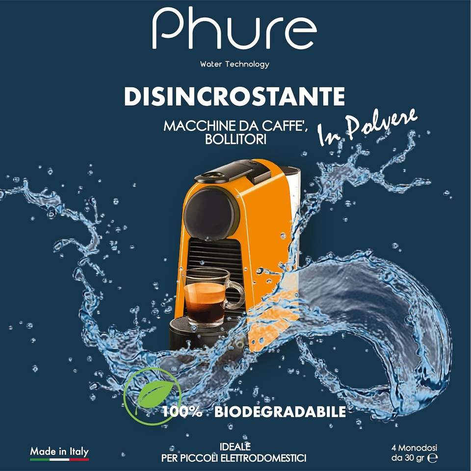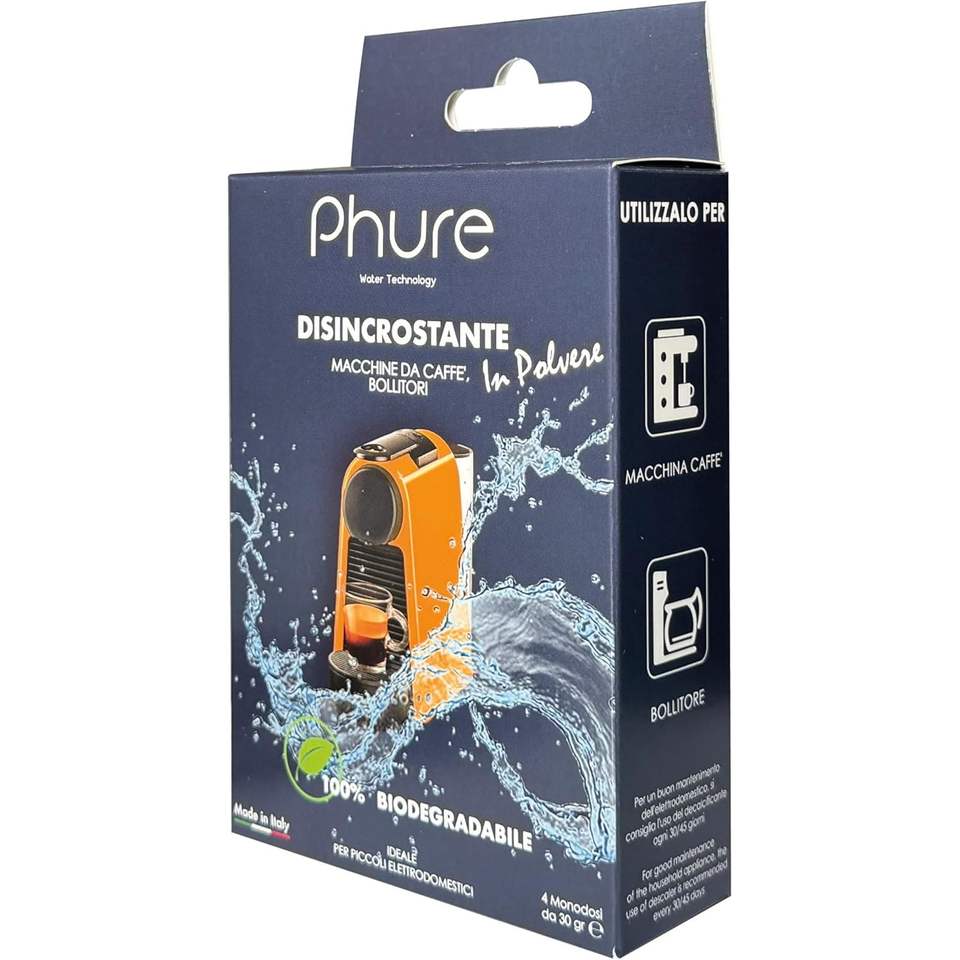 Phure Bio Eco-Friendly Decalk Powder 30g with 50%-80% Active Ingredient for Descaling Coffee Machines Kettles & Small Appliances