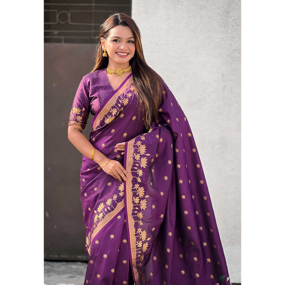 Pichwai Silk Saree with Wine Zari Woven Design Traditional Scarves & Shawls