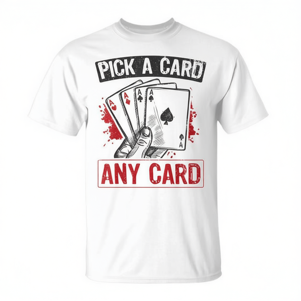 T-shirt Pick Any Card Magic pour magiciens à des fins promotionnelles