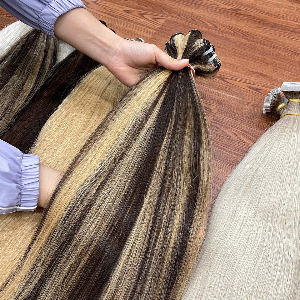 Extensions de cheveux naturels ondulés et lisses de couleur piano, tissage de qualité supérieure, cheveux humains vietnamiens, prêts à être expédiés