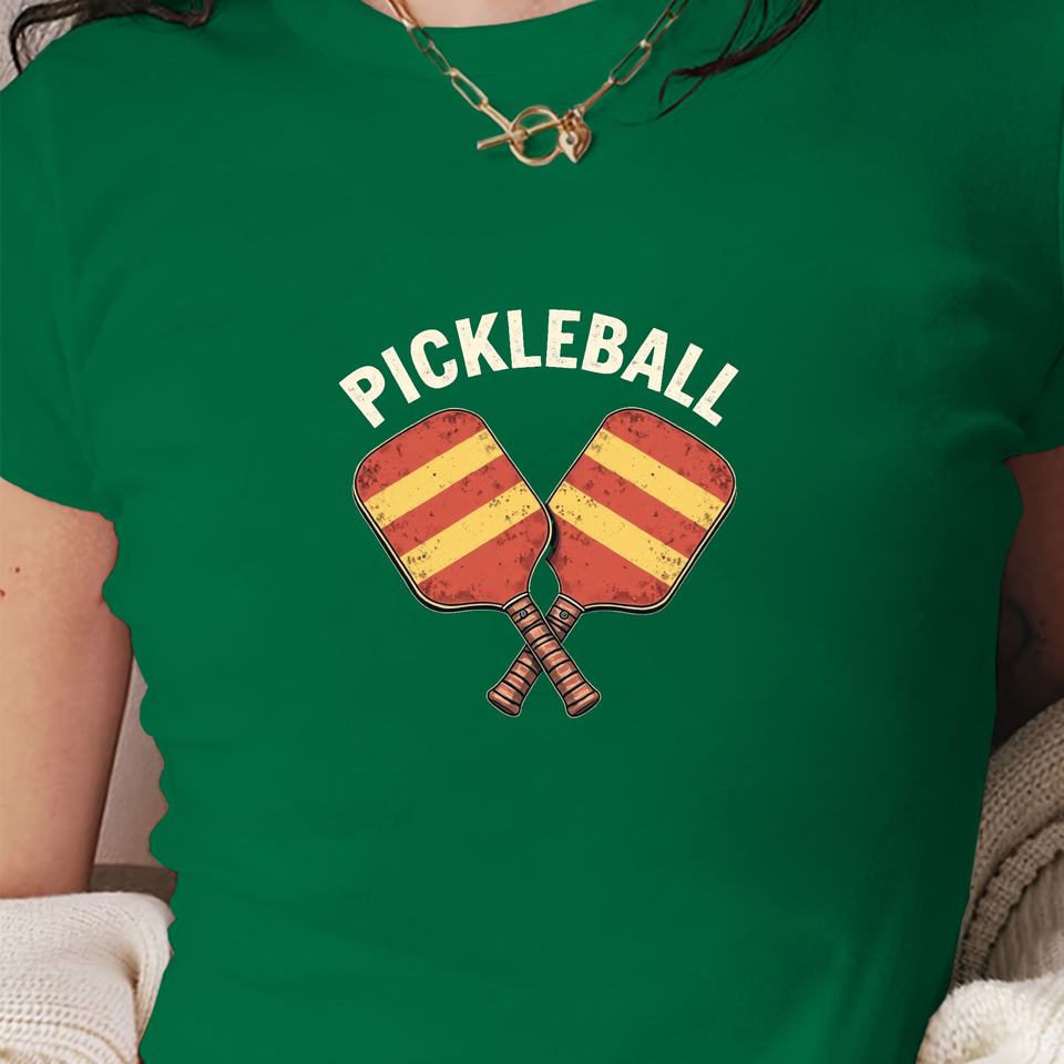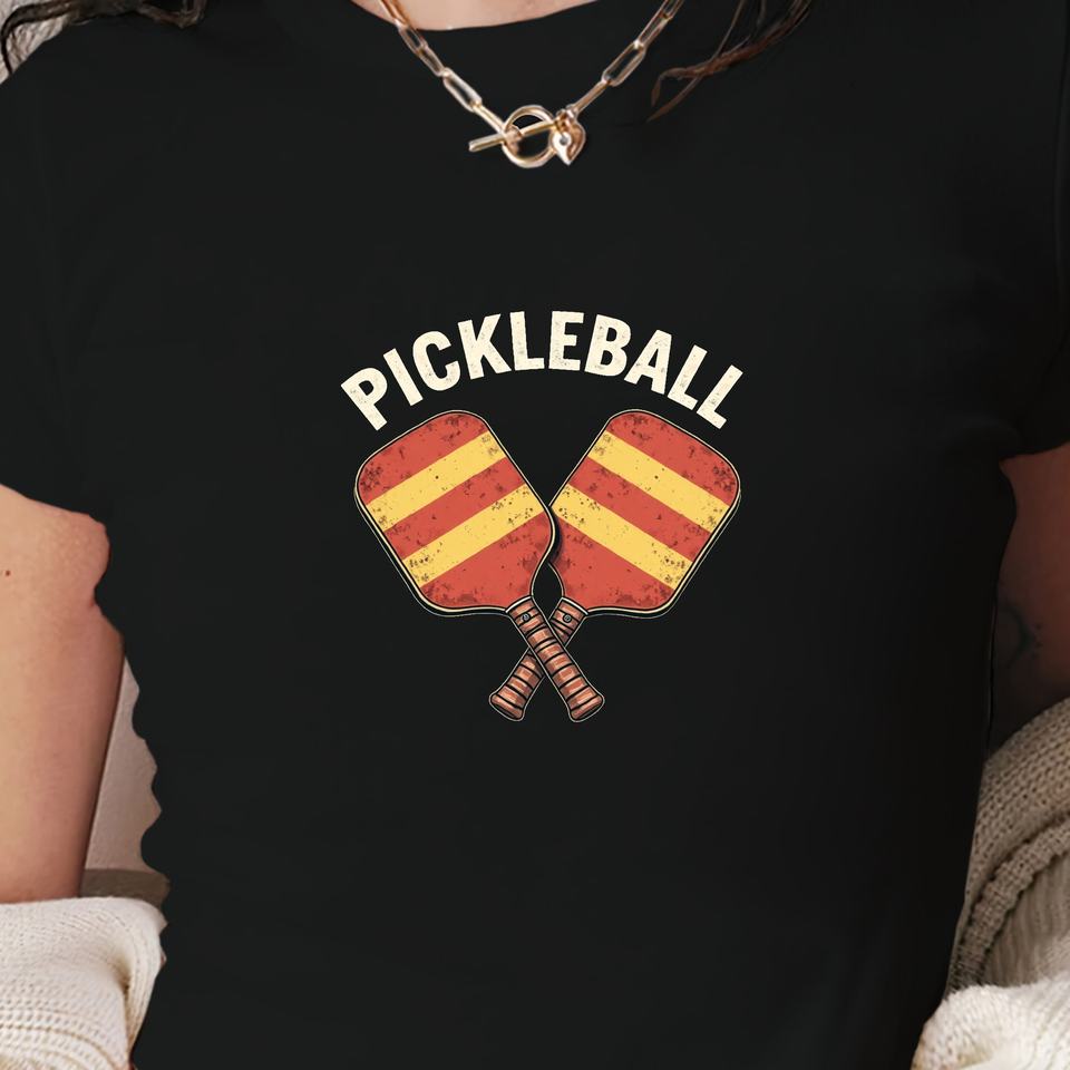 Pickleball paddles vintage design women's fashion short t-shirt