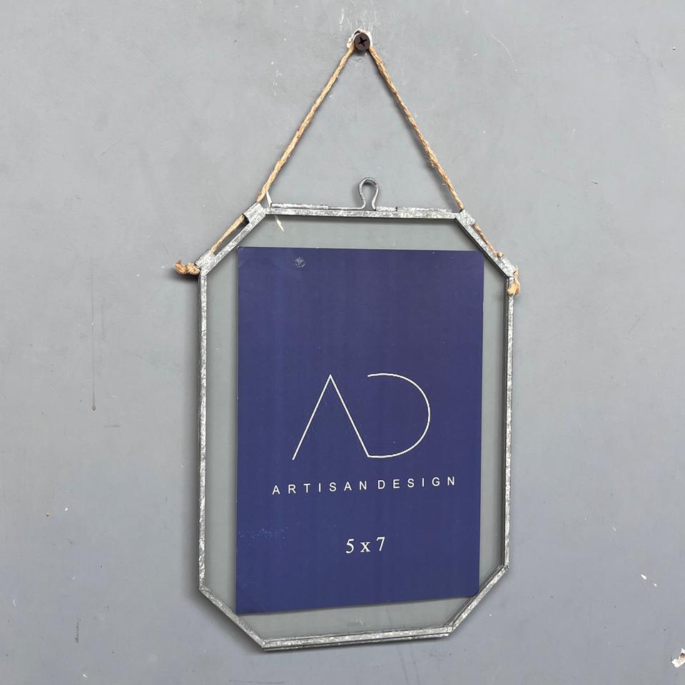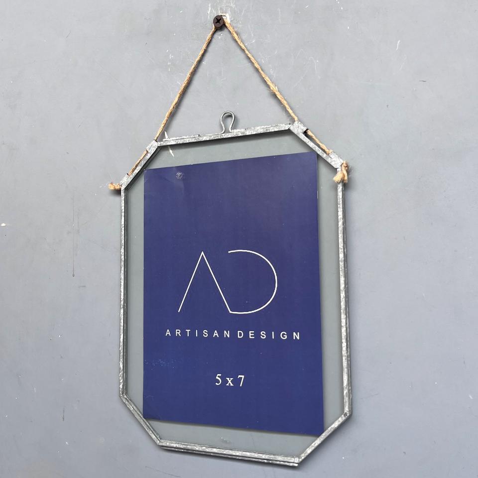 Cadre photo de forme irrégulière, cadre photo décoratif suspendu en fer et en verre