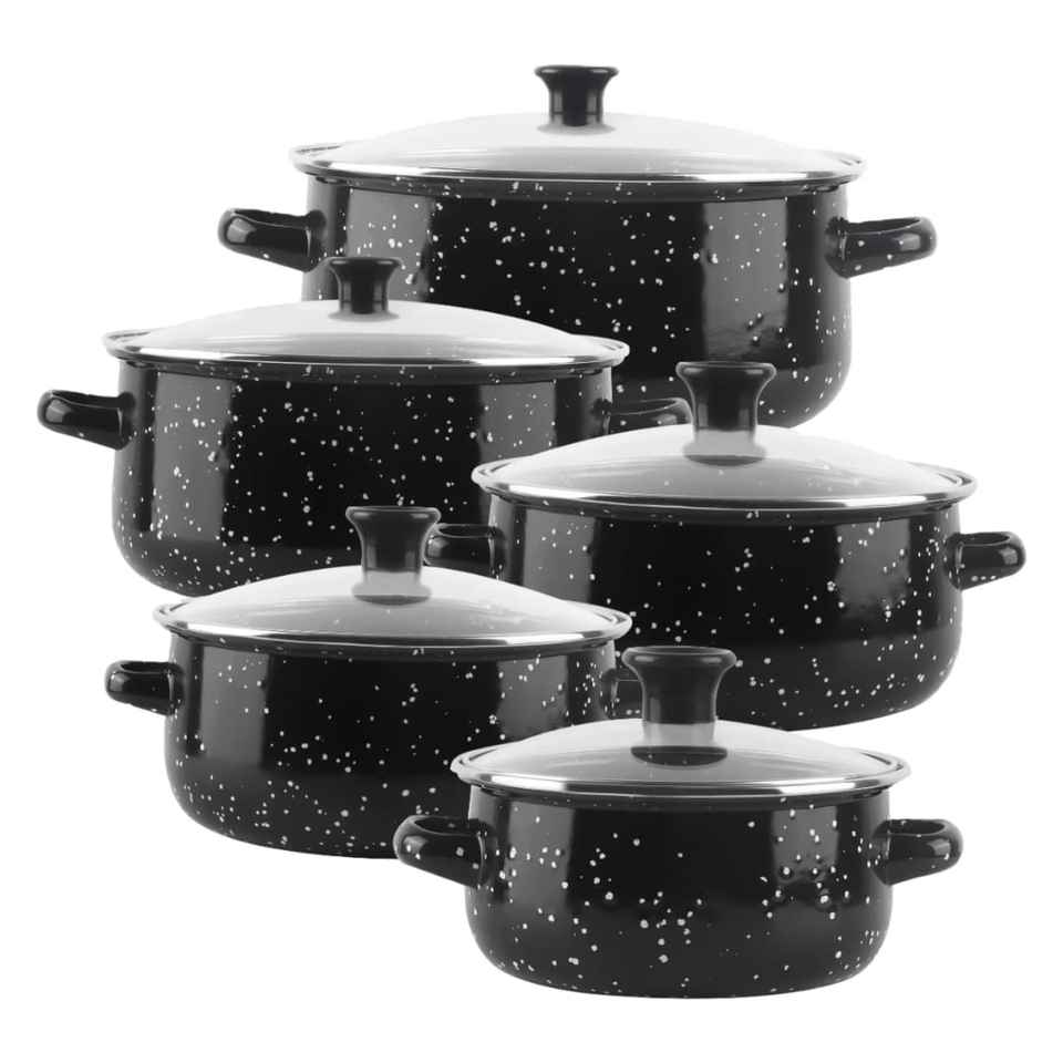 Ensemble de casseroles en émail avec couvercle en verre, motif floral, pour soupes et ragoûts, ustensiles de cuisine durables