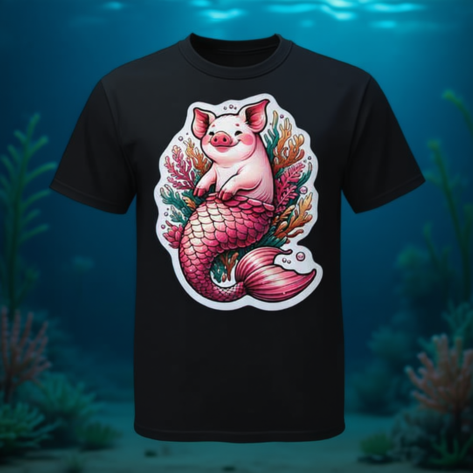 T-shirt Premium pour filles avec motif cochon sirène adorable et queue de sirène