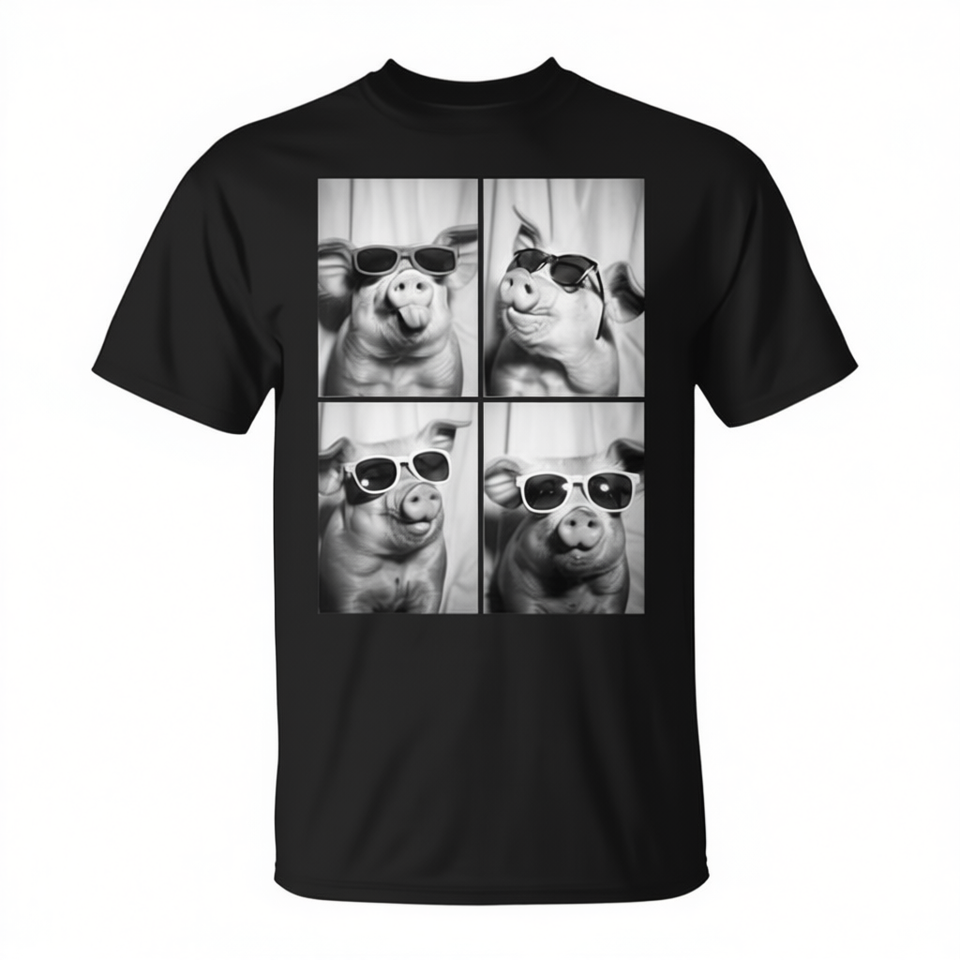 T-shirt avec des cochons avec des lunettes de soleil, animaux de ferme cool, noir, unisexe, taille adulte M