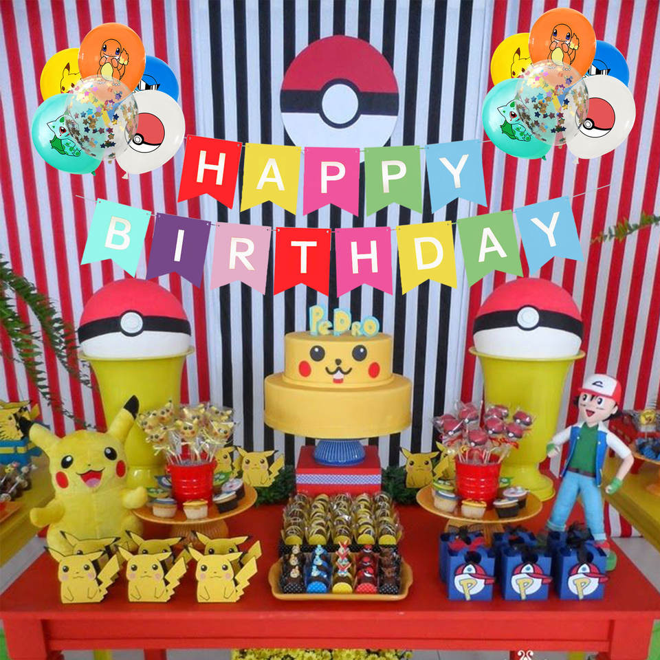 Pikachu thème fête d'anniversaire décoration ensemble joyeux anniversaire drapeau bannière enfants fête d'anniversaire fournitures dessin animé gâteau Topper