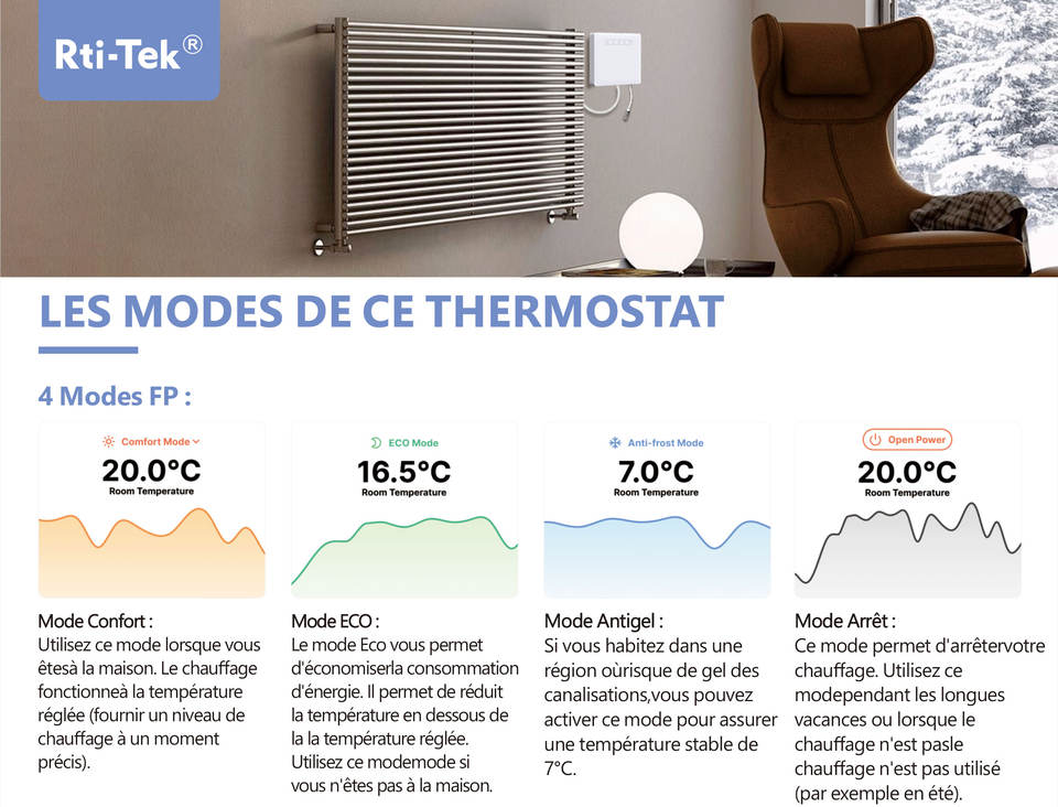 Compatibilité:tous les radiateurs électriques de classe II équipés de la technologie Pilot Wire