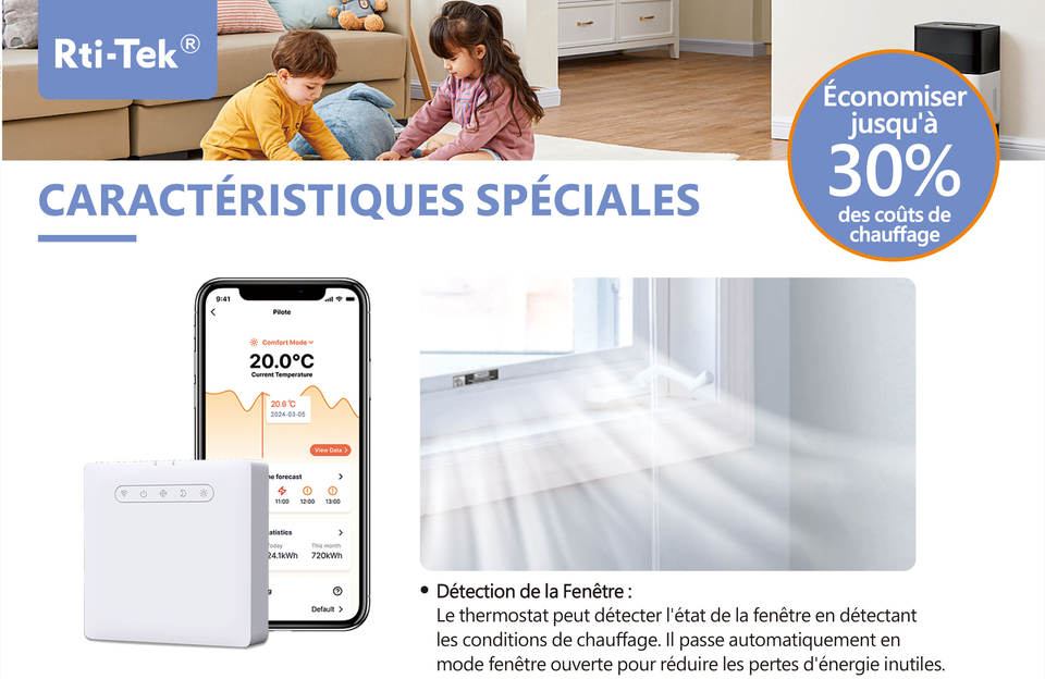 Module pilote, radiateur électrique, thermostat WiFi, contrôleur de chauffage, fil pilote pour utilisation en appartement, système hydronique, PC anti-inflammable