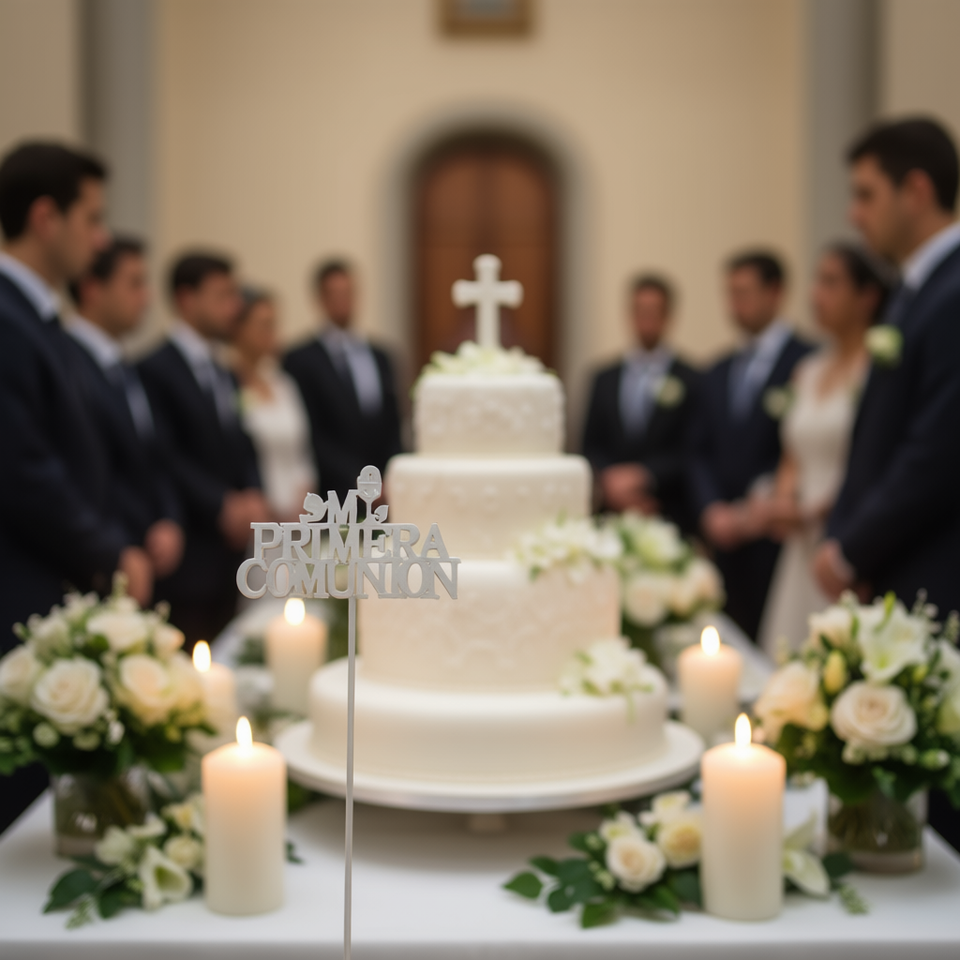 Pincho avec Lettre Première Communion 9x3.3cm Décoration de Gâteau Élégante Fournitures pour Événements Religieux