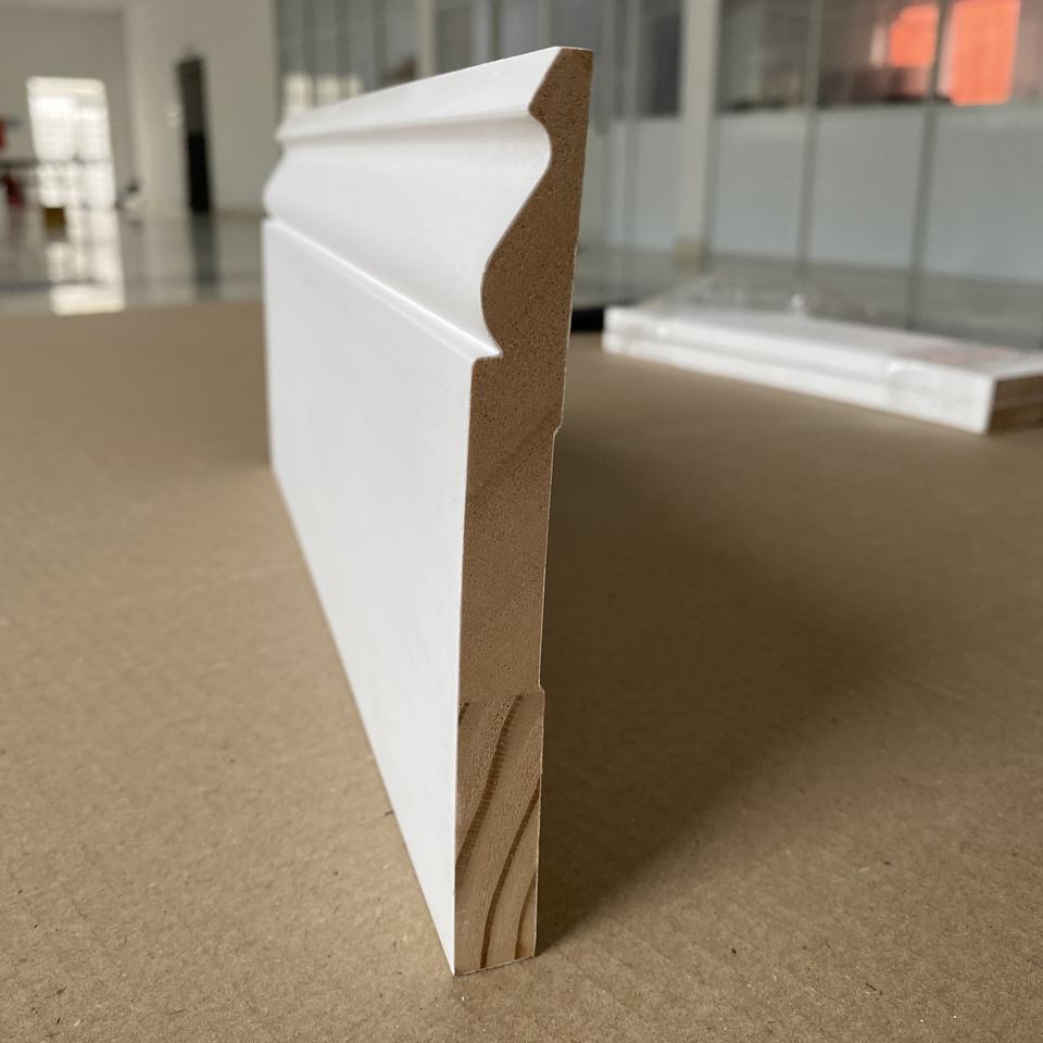 Nom:Plinthes et architraves en pin FJ à joints de doigt, apprêtées blanc