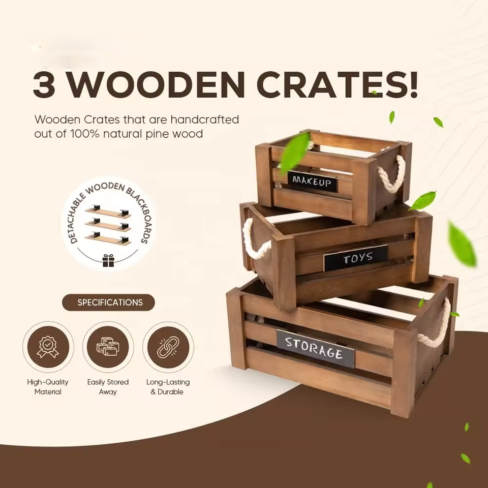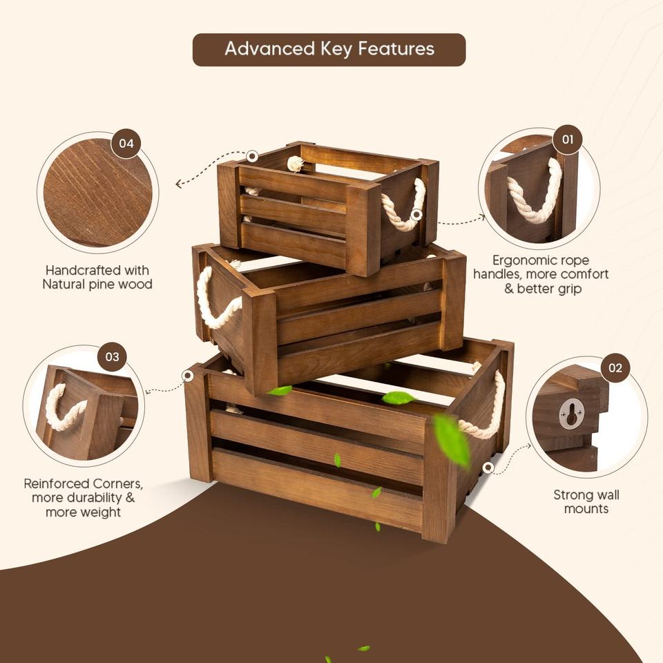 Nom du produit:Caisses en bois pour conteneurs de stockage pour organiser la maison