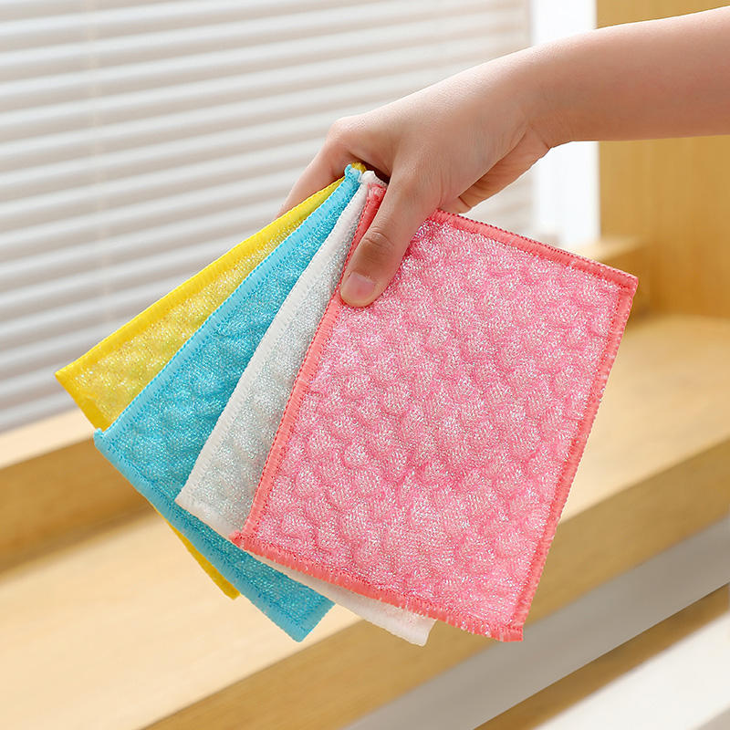 Bloc de lingettes de décontamination à motif ananas, tampon à récurer double face en viscose, chiffon à vaisselle en microfibre durable