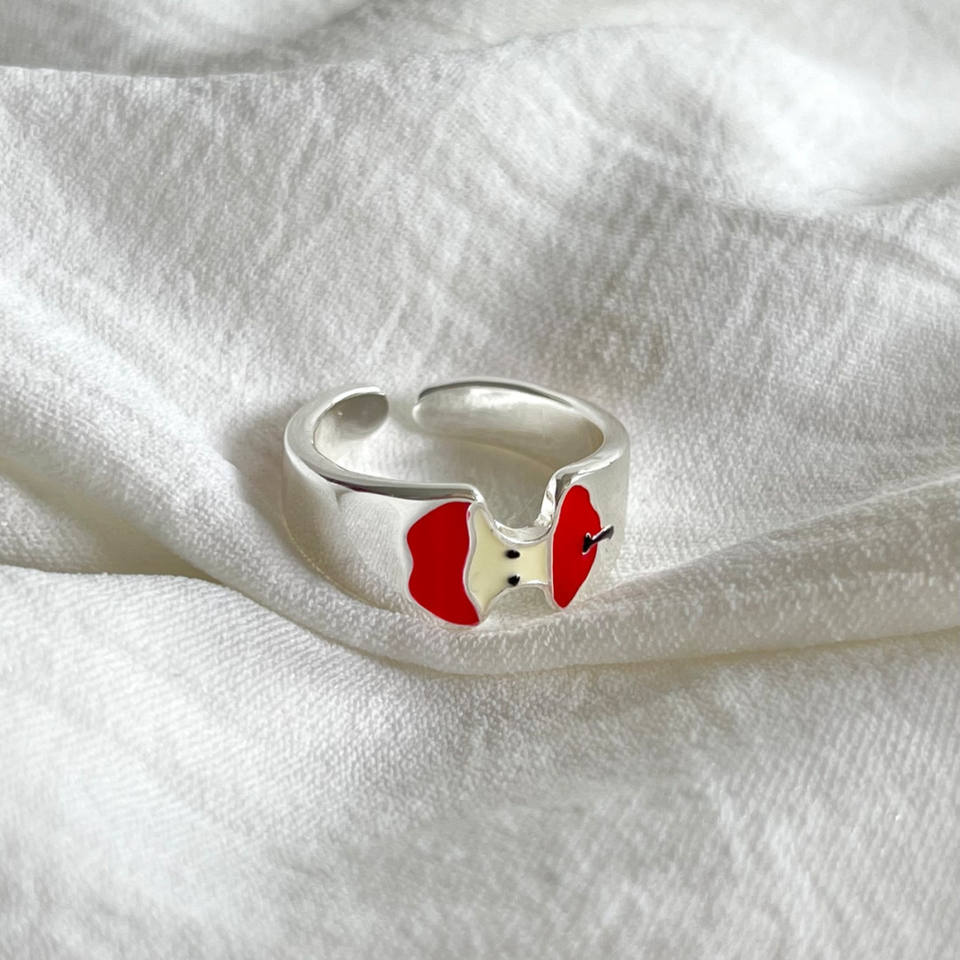 Ping an Joy One Apple Core Ring for Women S925 Pure Silver with Rose Gold Plating Drip Enamel Niche Versatile Cute Ring