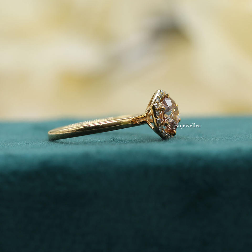 Bague de fiançailles de luxe en or massif rose 14 carats, taille ronde, diamant cultivé en laboratoire, bague cadeau pour femme IGI