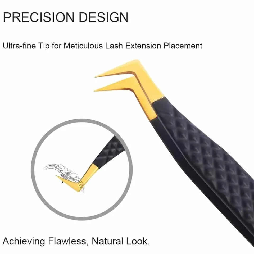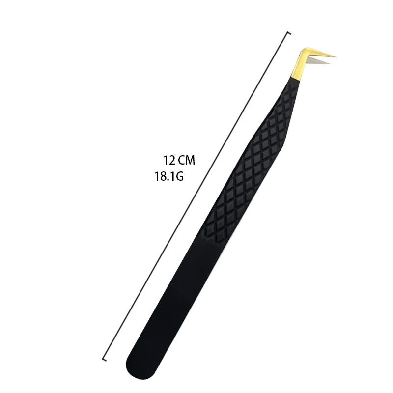 Botte rose à 90 degrés tenue forte anti-dérapant fausses extensions de cils pince à épiler pointe en fibre de précision pince à cils méga Volume