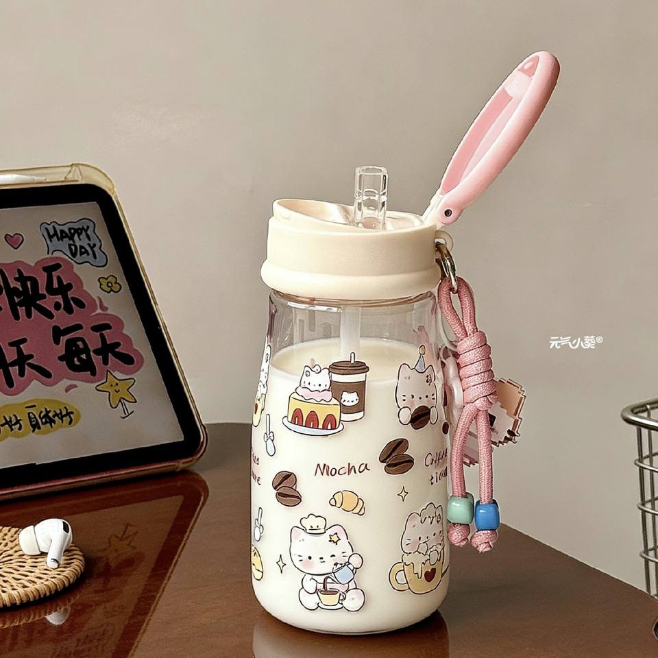 Gobelet à eau rose adorable en forme de chat - un gobelet en plastique unique et portable de grande capacité avec paille, inédit ailleurs.