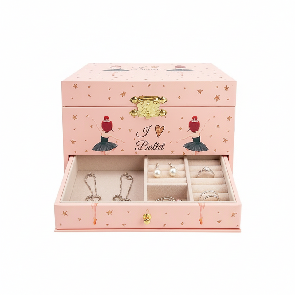 Boîte à musique rose ballerine avec miroir et tiroir, manivelle en papier, mélodie personnalisée, cadeau pour filles