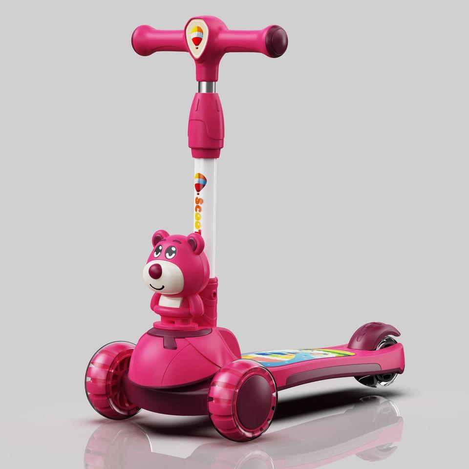 Ours rose deux-en-un Scooter et bloc de patinage 3-6 ans bébé équitation 6-12 ans jouet fille matière plastique Durable