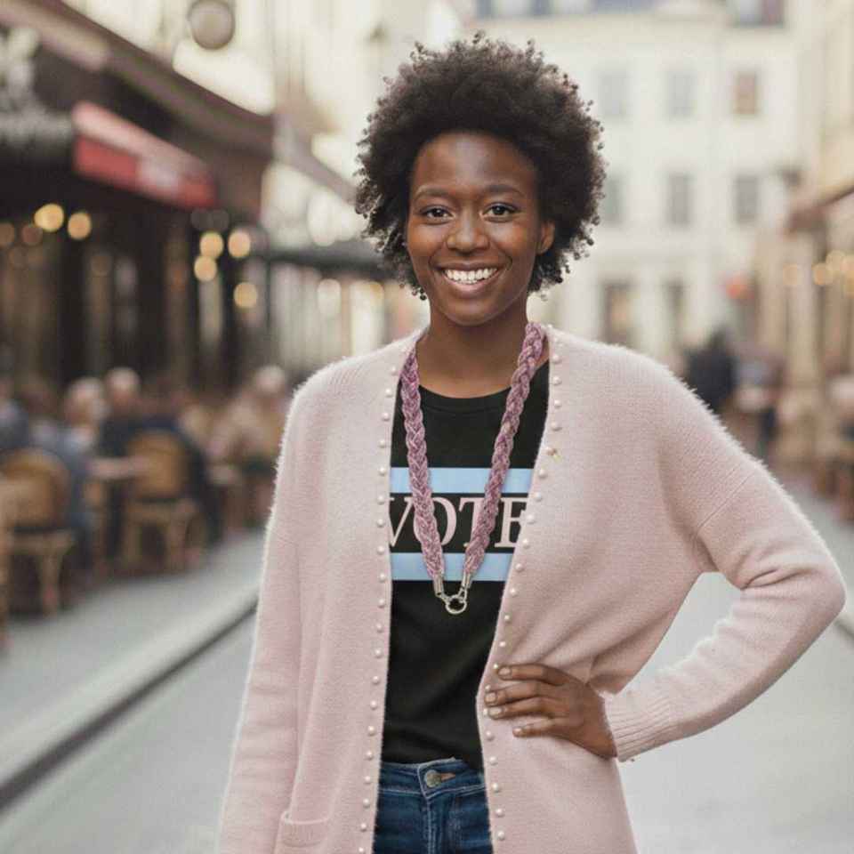 Lanière rose scintillante tressée avec strass, élégante et durable, accessoire de mode pour le cou