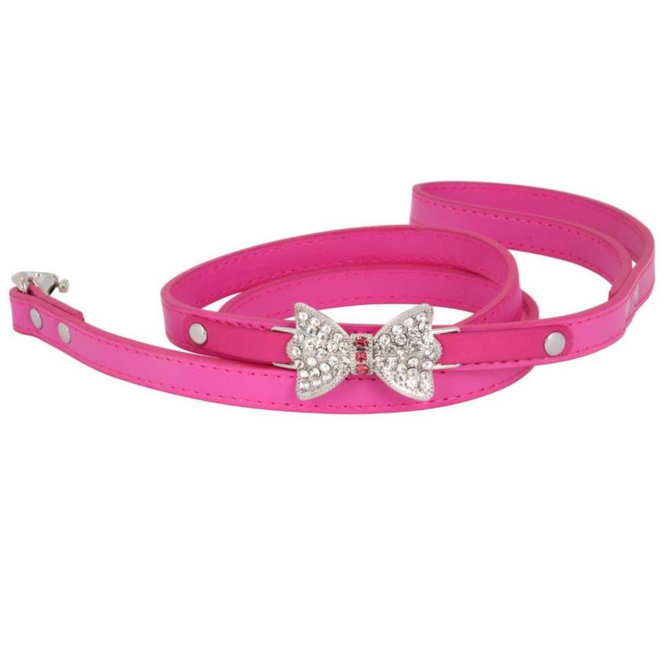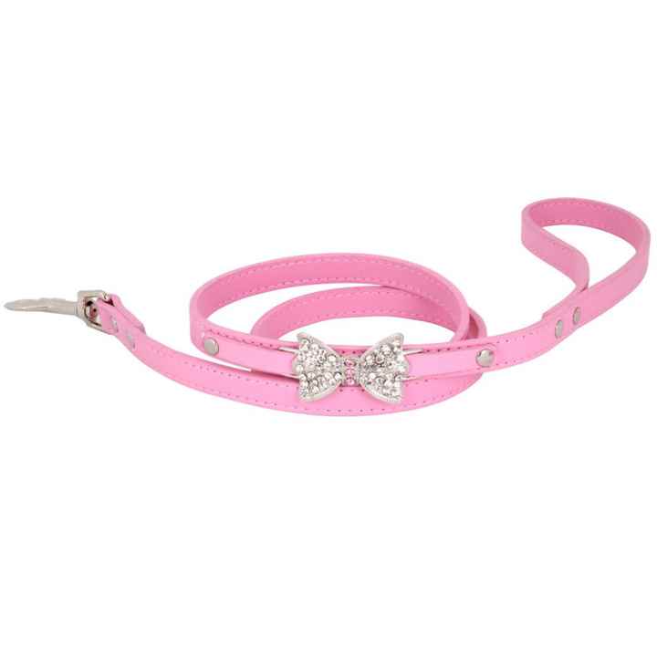 Laisse pour chien en PU rose avec nœud papillon et motif cœur, décorée d'un foulard, pour petits chiens - Laisse de traction anti-perte