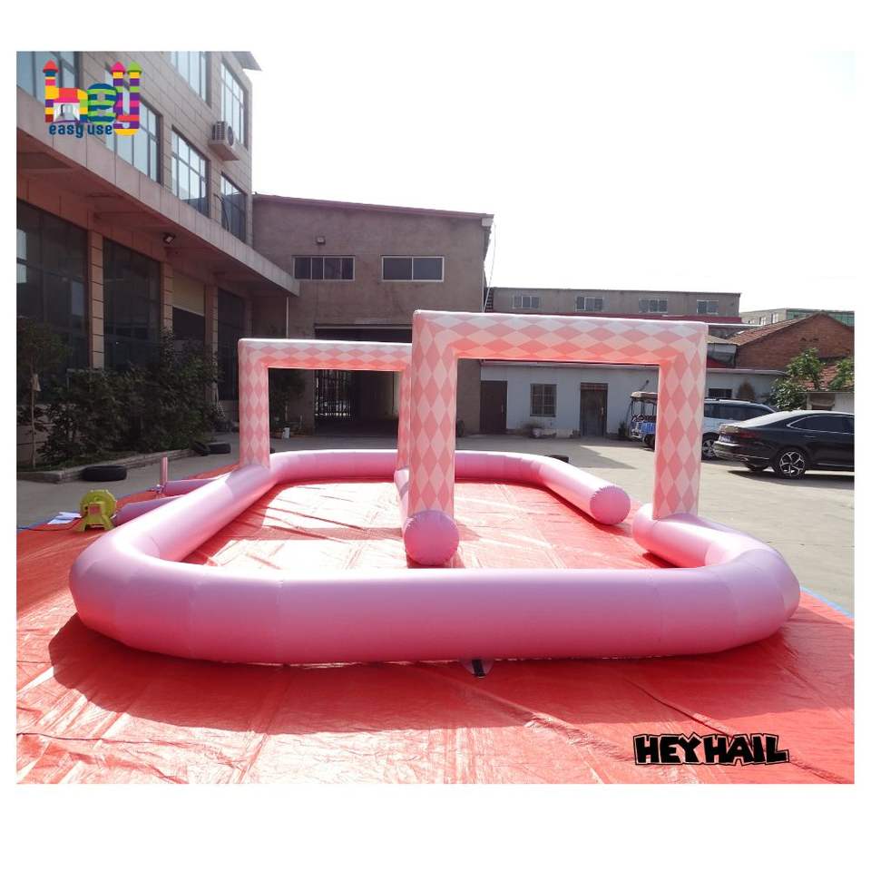 Piste de voitures tamponneuses rose, piste de course gonflable, jeux gonflables, obstacle gonflable, karting en plein air pour enfants, sports