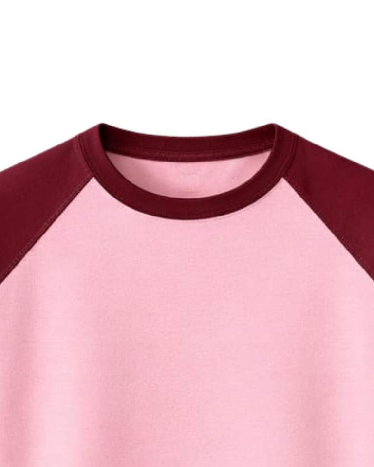 T-shirt à manches raglan rose bordeaux pour homme, décontracté, été, col rond, respirant, mélange de coton, doux, confortable, léger, à porter au quotidien
