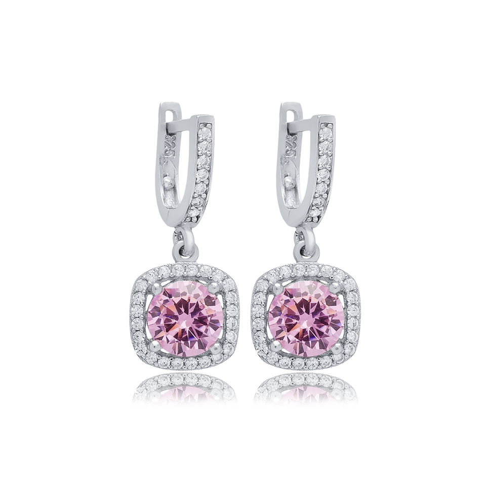 Boucles d'oreilles pendantes en argent avec design carré en pierre CZ rose Fabricant de bijoux en gros turc fabriqué à la main